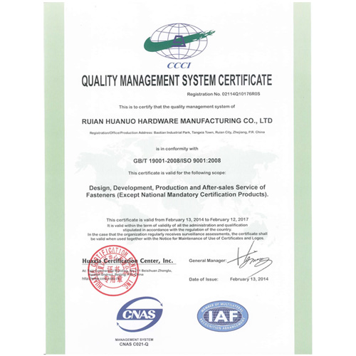 質量管理體系認證證書